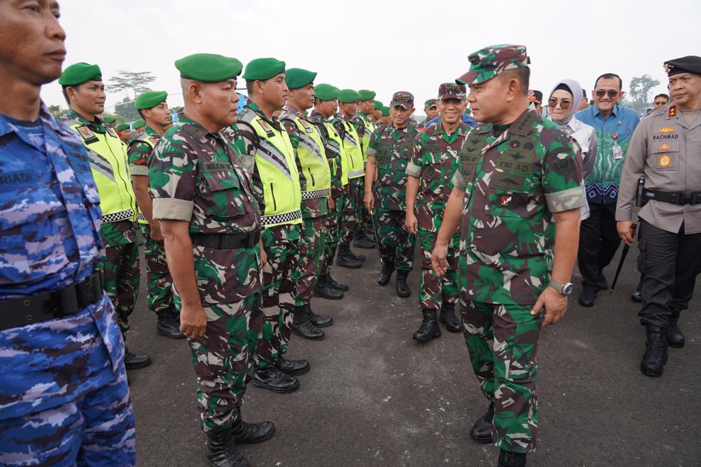 Palembang— Kepala Staf Angkatan Darat (Kasad), Jenderal TNI Dr. Dudung Abdurachman, mengecek langsung kesiapan Gelar Pasukan Penanganan Kebakaran Hutan dan Lahan (Karhutla) di Wilayah Sumatera Selatan (Sumsel), Jum’at (08/09/2023) bertempat di Base Ops Lanud SMH Palembang.